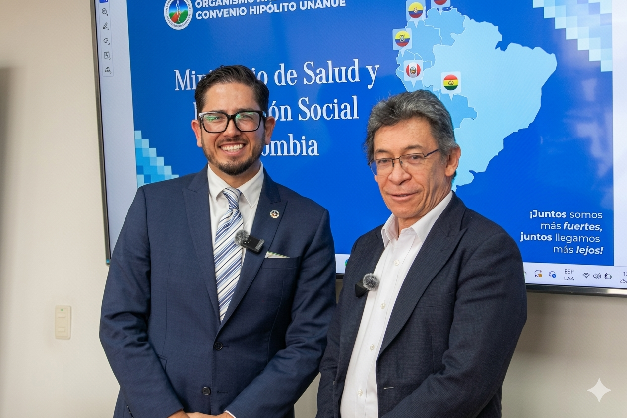 Durante un encuentro en Bogotá, el día de ayer, el secretario ejecutivo del ORAS-CONHU, Fernando Araos Dattoli, y el viceministro de Salud Pública y Redes Asistenciales, Jaime Urrego, coincidieron en que muchos de los desafíos en salud superan las fronteras nacionales y requieren respuestas coordinadas entre países.