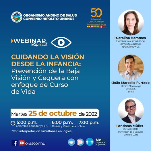Hinojoza, M., Calle, MC., Hommes, C., Furtado, J., Müller, A., (2022, 20 octubre). Cuidado de la visión desde la infancia: Prevención de la baja visión y ceguera con enfoque de curso de vida [Webinar]. Organismo Andino de Salud - Convenio Hipólito Unanue.