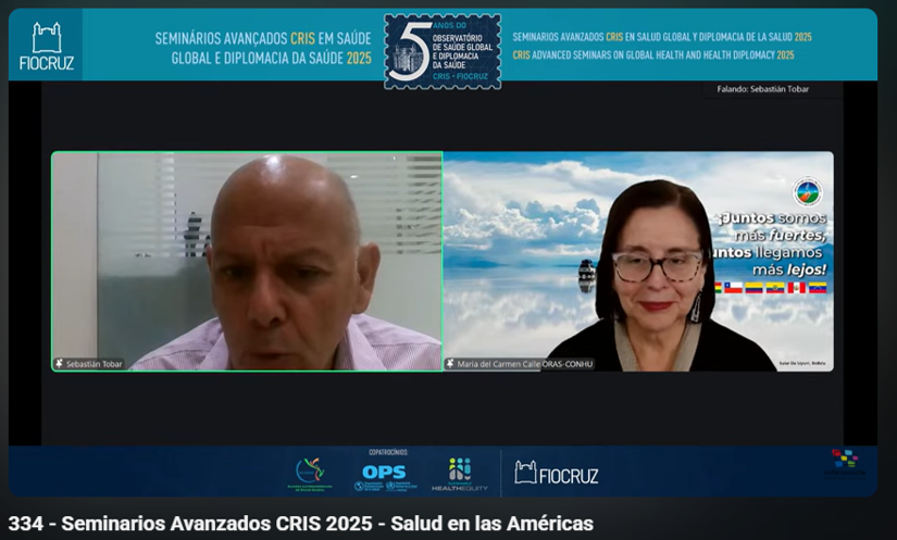 La Dra. María del Carmen Calle, Secretaria Ejecutiva del Organismo Andino de Salud - Convenio Hipólito Unanue (ORAS-CONHU), participó activamente en la segunda edición del "Curso de Actualidades en Salud Global y Diplomacia de la Salud", promovido por el Centro de Relaciones Internacionales en Salud de la Fundación Oswaldo Cruz (CRIS/FIOCRUZ), un espacio académico relevante para la reflexión y análisis de la política sanitaria global desde una visión latinoamericana.